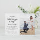 Announce your marriage proposal and engagement with this funny and modern photo card featuring the words, "She said, 'What took you so long?'" in hand lettered script calligraphy above a heart divider and further information. A great way to announcement your proposal in marriage and your engagement!