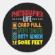 Photographer Life Checklist - Card Full, Battery Exhausted, Dirty Sensor and Sore Feet. Colourful icon art design to add to a photographer's accessories and equipment gear. > Funny idea for a beginning photography student, amateur or professional instructor. > Customisable: Add your own custom name or text.