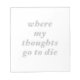 A funny notepad with the message "where my thoughts go to die". A little cynical humour.
