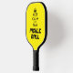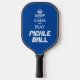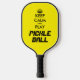 Funny pickleball paddles - Keep calm and play on. Cool personalised Christmas or Birthday gift idea for pickleball lovers. Create unique paddles for athletic player, fan, sports coach, team, dad, friend, husband, boyfriend, coworker, boy, boss, uncle, grandpa etc. Personalise with your own name or cute quote. Professional quality game rackets for sporty men, women and kids. Yellow and blue or custom colours. White, tan or black grip / trim options.