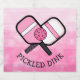 Funny wine bottle label for a gift for someone who loves pickleball. Funny pickleball pun. PIckled Dink. Cute pink girl's pickleball joke.