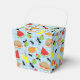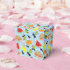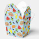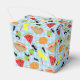 Funny, cartoon picnic food such as sandwiches, fried chicken drumsticks, sliced watermelon, lemonade and ants of course! All on a blue gingham pattern picnic blanket background. Adjust the pattern any way you like on this custom party favour box. This humourous design is perfect for wrapping a treat for foodies this spring or summer!