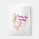 A happy pig on birthday party favour bags. Use "Personalise this template" to tweak the "Thanks for coming!" text and create unique, customised party accessories. Featuring a gleeful pig, beneath a teetering layer cake with lashings of green icing and topped with pink candles.
