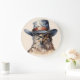 Funny pigeon wearing a cowboy hat, watercolor large clock