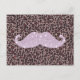 Funny Pink Bling Moustache And Animal Print Patter Postcard