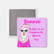 The Funny Pink llamaste Saying magnet is a cute fun magnet featuring a funny Lady Llama in a pink outfit sharing her bits of wisdom on a square magnet.