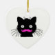 FUNNY PINK MUSTACHE BLACK CAT CERAMIC TREE DECORATION
