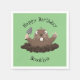 This cute funny pocket gopher is digging with a trowel. Drawn in happy cartoon style.