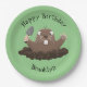 This cute funny pocket gopher is digging with a trowel. Drawn in happy cartoon style.