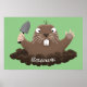 This cute funny pocket gopher is digging with a trowel. Drawn in happy cartoon style.