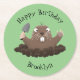 This cute funny pocket gopher is digging with a trowel. Drawn in happy cartoon style.