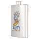 A funny polar bear on a premium flask. Use "Personalize this template" to tweak the "PARTY IN A BOTTLE" text and create a unique customized item. Take the party wherever you go with this flask, featuring a cartoon of a cool polar bear enjoying a cocktail and fan while surfing on a bright yellow surf board. Conjure the summer vibes all year around with this surfing themed art.