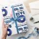 This custom gift wrapping paper features a funny, police officer birthday theme for a 50th birthday party. An image of a shiny looking blue and gold doughnut is printed in the centre with the birthday "FIVE" printed above it, in reference to the five-o slang term for police officers. The greeting can be read as "Oh no, it's the five-o." It's perfect for a cop with a sense of humour. A happy birthday message is printed at the bottom, followed by a sample name that you can personalise to include your own custom name or text.