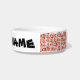 This is a heavy, durable bowl decorated with Tibbies of many colors, the perfect size for hungry/thirsty Tibs. The design is interesting and printing clear.