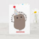 A funny potato birthday card featuring a cute potato. He's ready to party with his party hat!This birthday potato card would make a fun card to receive. You can easily personalise the front of the card with his or her name. Inside it reads "Have a spud-tastic birthday!" underneath the colourful streamers.