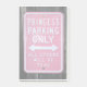 A picture of a real funny and humourous pink parking sign stating the place is reserved only for princess & everyone else will be toad...