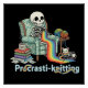 Funny Procrasti-knitting Skeleton and Cat with Poster