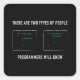 There are two types of people, programmers will know. This is an awesome funny gift for Coding nerds and software development enthusiasts with a passion for computer science.