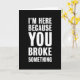 This is the ideal Programmer Gift for Developers with a sense of humour. "I'm here because you broke something" is stated on the top as a funny part of the life of IT Support workers or software devs