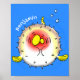 Funny puffer fish porcupine fish cartoon poster