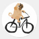 Funny Pug Puppy Dog Riding Bicycle Classic Round Sticker