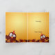 A graphic illustration of a pumpkin patch with cartoon roosters on a custom greeting card. The card has text templates for your personalisation. Original artwork: Copyright Charmaine Paulson