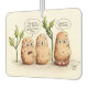 Funny Pun about Potatoes. A drawing of three potatoes. The first asking: Why are we called potatoes? We don't have toes. The 3rd one has big feet with big toes and says: Speak for yourselves. Lime green background border.