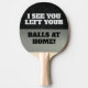 A black and silver design for the avid ping pong player with a funny double entendre ping pong quote. I see you left your balls at home!