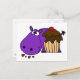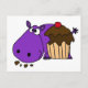 Wonderful humourous purple hippo eating a chocolate cupcake makes a great gift. Can also add custom text and change background colour when ordering.