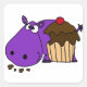Funny Purple Hippo Eating Cupcake Square Sticker