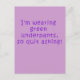 I'm wearing green underpants, so quit asking! Funny purple design for people who don't wanna wear green on St. Patrick's Day!!! Customise it with your own text, change the colours, make it yours! Or personalise one as a gift. Available in adult and children sizes in tons of styles, sizes and colours, including purple!