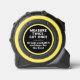Funny Quote Measure Twice Cut Once Tape Measure. White funny text on a black and yellow background. Great as a funny gift for a man or a woman.