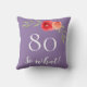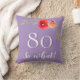 Funny Quote Watercolor Red Rose 80th Birthday Throw Pillow. Modern and elegant floral 80th birthday pillow with beautiful watercolor roses and twigs on a purple background. The funny and positive quote 80 So what is great for a person who celebrates 80 years and has a sense of humour. Great 80th birthday gifts.
