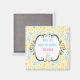 Magnet with a funny humourous quotation. When life hands you lemons, add vodka. The saying is set inside a fancy whimsical frame with an illustration of a mason jar filled with lemonade (and of course vokdka too!). The background is a quaint and cute pattern composed of yellow lemons and pastel blue flowers in a hand drawn doodle style.