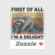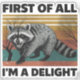 ‟Funny Racoon Quote Retro Design – “First of All, I’m a Delight” | Cute Sarcastic Animal Art | Humour Wildlife Gift for Nature Lovers‟ Bring a touch of fun, sass, and wilderness charm to your day with this Funny Racoon Quote Design – “First of All, I’m a Delight.” Featuring a bold and cheeky racoon illustration with a vintage sunset background, this playful artwork blends retro humour and wildlife style perfectly. Ideal for animal lovers, sarcasm fans, and outdoor enthusiasts, this design fits beautifully on all Zazzle products — from T-shirts, mugs, and stickers to tote bags, phone cases, and home décor. Perfect as a funny racoon gift, sarcastic birthday surprise, or quirky camping accessory, it adds personality to anything you wear or carry. Whether you love funny animal sayings, forest creatures, or retro outdoor aesthetics, this design says it all — you’re a delight, and you know it! Add this unique vintage racoon design to your collection or gift it to someone who loves humour and wild nature combined. Great for men, women, teens, and friends with a sarcastic sense of humour.