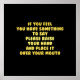 Bold yellow text on a black background humorously recommends that you raise your hand to cover your mouth when wishing to speak.