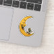 Get ready to roll with the cosmos. This vibrant sticker features a crescent moon chuckling with joy as a cool rat, rocking shades and serious attitude, skateboards down its arc. Perfect for laptops, water bottles, notebooks, or anywhere you want to add a little cosmic mischief and skater flair.