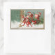 FUNNY RED CHRISTMAS ELVES SWEEPING IN THE SNOW RECTANGULAR STICKER