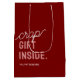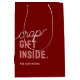 Delight your loved ones this festive season with our modern Christmas gift bag. Its eye-catching deep red background is sure to elicit chuckles with the light-hearted quip 'crap gift inside'. Plus, it's personalised with your name for that extra special touch! This isn't just a gift bag - it's a memory maker.