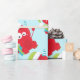 This cute and funny gift wrap is perfect for your little guy or girl for this Christmas holiday season. This design features a funny and friendly red monster with a green Santa hat. He’s holding a present with a pretty green ribbon.