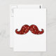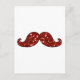 FUNNY RED MUSTACHE PRINTED GLITTER POSTCARD