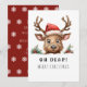 Part of the funny and ugly Christmas holiday collection, this simple, trendy and funny 'Oh Dear' Reindeer Christmas greeting card features a reindeer wearing Santa's hat with peeking eye-rolling in surprise mode and snowflakes at the back of the card. It is perfect for a fun-loving personality. The 'Merry Christmas' wording can easily be changed or deleted to make this card a unique festive gift for a loved one. The message at the back can be changed or turned off as needed.