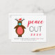 Funny Christmas holiday postcard celebrating the end to a tough 2020. A cartoon reindeer in a Santa hat is wearing a face mask standing next to "Peace Out 2020" in fun red and black typography. The greeting at the bottom wishes a "Merry Christmas & Happy New Year," with "new" in red to emphasise the welcomed new year to end 2020.