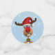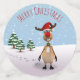 A cute and funny Christmas illustration: A reindeer wearing Santa Claus hat with footsteps in the snow.