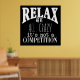 Funny poster with white text on a black background. Text says, "Relax, we're all crazy. It's not a competition." Great for dorm rooms, bedrooms, or even your office. Contact us for matching products.