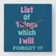 Funny Reminder for Forgetful People Square Wall Clock with a funny reminder quote - List Of Things which I will FORGET !!!