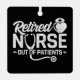 This funny retired nurse design is perfect for any nurse retirement party, nurse appreciation, nurse's week or for any nurse that is proud to be a retired ER nurse, RN, LPN or CNA! Features 'Retired Nurse - Out of Patients' funny nurse meme with heart & stethoscope nurse graphic. Fun design for your nurse mum, co-worker or your favourite retiring nurse!