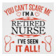 Retired nurse joke quote that makes a great gift idea! Says 'You can't scare me, I've seen it all!'