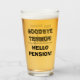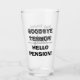Funny retirement gift glass for retiring person. Goodbye tension hello pension. Custom tumbler beer glass gift idea for retired men and women. Unique drinking present for company retiree, dad, mum, wife, husband, sister, brother, father, grandpa, grandma, mother, aunt, uncle, business friend, coworker, retiring boss, colleague, office worker, school teacher, coach, staff, personnel etc. Add your own personalised name and farewell wishes. Elegant script typography template. Great for beer, cocktails and other alcoholic drinks. Double sided print. Happy Retirement!
