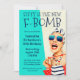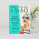 A unique 50th Birthday Party Invitation for the ladies, this design features an outrageously stylish woman in striped sunglasses and hair turban with a polka dot bag and striped towel. The humour is carried out in the bold text title "FIFTY IS THE NEW F-BOMB". The retro colour scheme of aqua, beige, navy and red adds to the fun of this design. Personalise the details with your desired text and you're all set for a fabulous celebration.